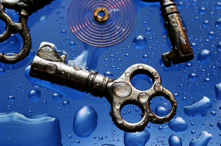 Abstract Fabric Paint, Tools, Clock Keys, and Nautilus Shells
